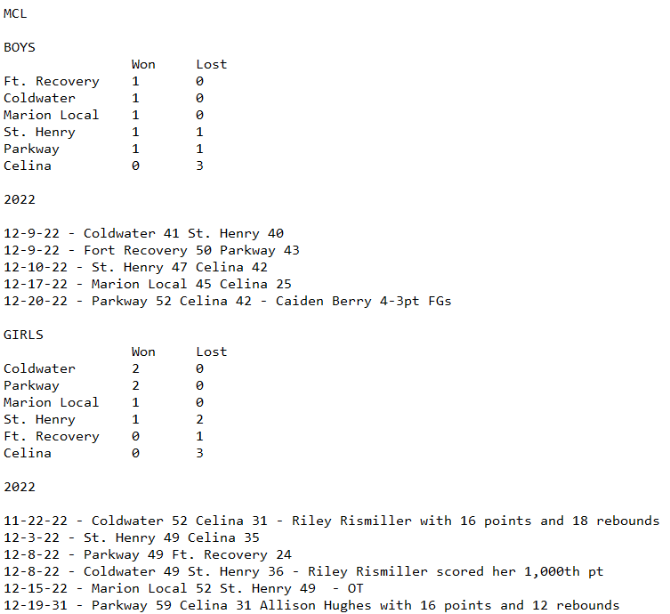 (12-24-22) One week still remains in the 2022 part of the season. Holiday tournaments will feature the final week of the season with several Mercer County League match-ups.