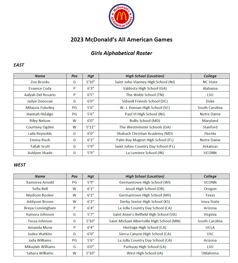A complete list of 2023 McDonald’s All American Games Final Rosters is available at mcdaag.com.