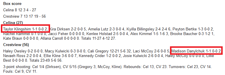 As the regular season winds down Crestview’s Madison Danylchuk and Celina’s Taylor Klingshirn were both given an opportunity for a night to remember.