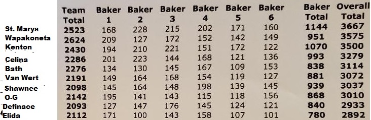 (2-9-23) St. Marys trailed Wapakoneta heading into the Baker games, but the Roughriders would make-up the pin difference to win today’s Western Buckeye League Boys Bowling Tournament. Wapakoneta would end up in 2nd place, followed by Kenton in 3rd place.