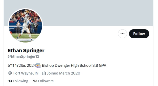Springer has verified on his Twitter account that he will be playing at Bishop Dwenger during his Senior season.