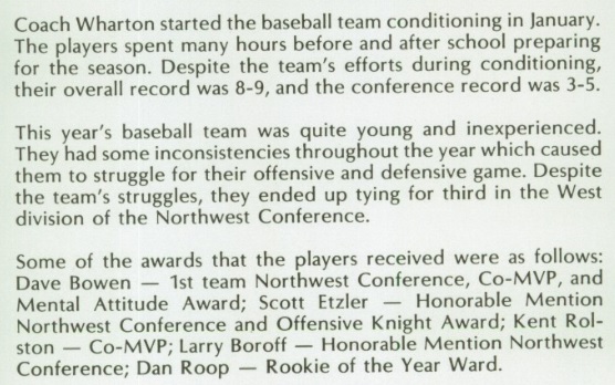 1979 Ft. Wayne Snider Baseball team…Wharton’s Senior Season