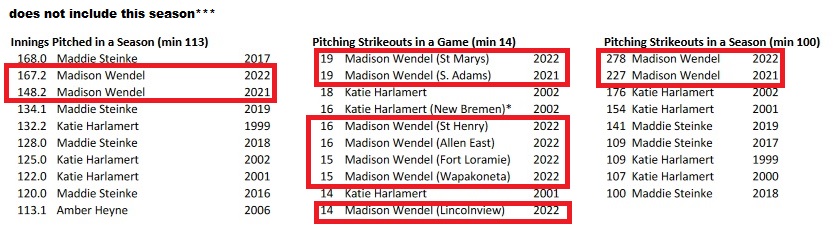 (5-5-23) Let this sink in Coldwater’s Madison Wendel is just a Junior. What a week she has had as she continues to roll up the BIG numbers.