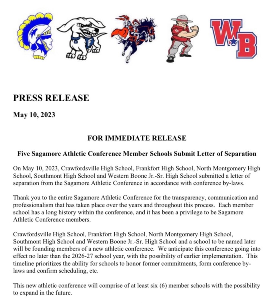 (5-10-23) Five Sagamore Conference member schools have decided to leave and form a new six athletics conference.