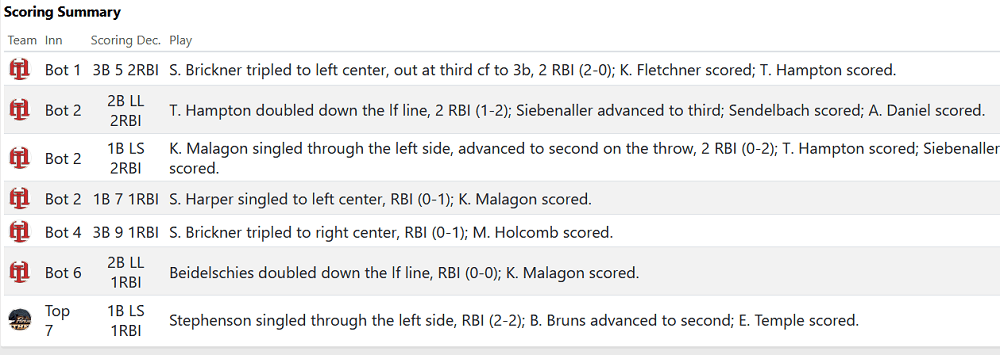 The Chieftians after taking a 2-0 lead in the bottom of the 1st inning, would score 5 more runs in the 2nd inning and never looked back.