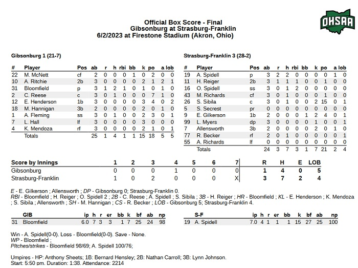 The Chieftians will play in the championship game tomorrow against Strasburg-Franklin who beat Gibsonburg 3-1 in the 2nd semifinal game today.