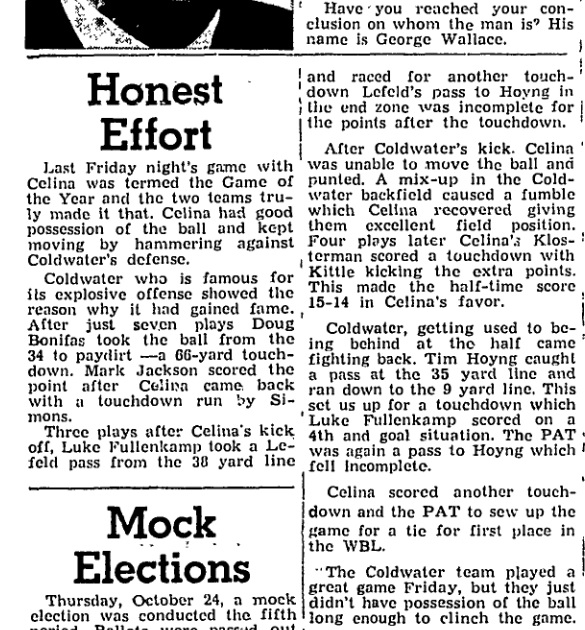 Mercer County Chronicle, October 31st, 1968 – Coldwater Chatter section —