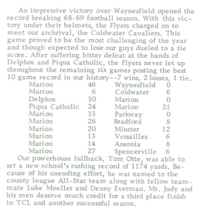 The loss would have an impact on the final TCL standings…Piqua Catholic would finish in 2nd place a half-game ahead of the Flyers. At the time the 7-2-1 record was the best in Flyers’ history.