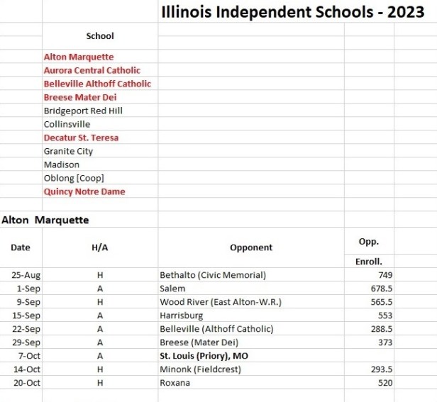 Last week the IHSA released football schedules for every school competing this year. 11 independent schools make-up a part of that list, 6 of those schools were Catholic schools.