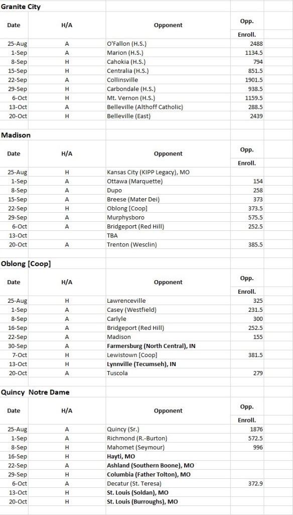Quincy Notre Dame‘s schedule of 9-regular season games…five of those games are scheduled against Missouri schools, it shows that the committee will have a lot to discuss.