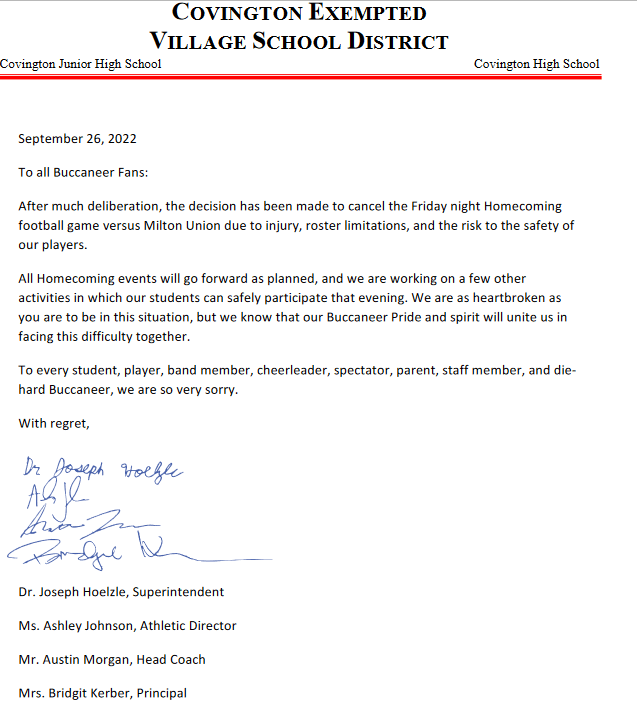 NOTE: SSN sent emails to both schools administrations, this story will be updated should they reply to us about the football situation for the upcoming season.