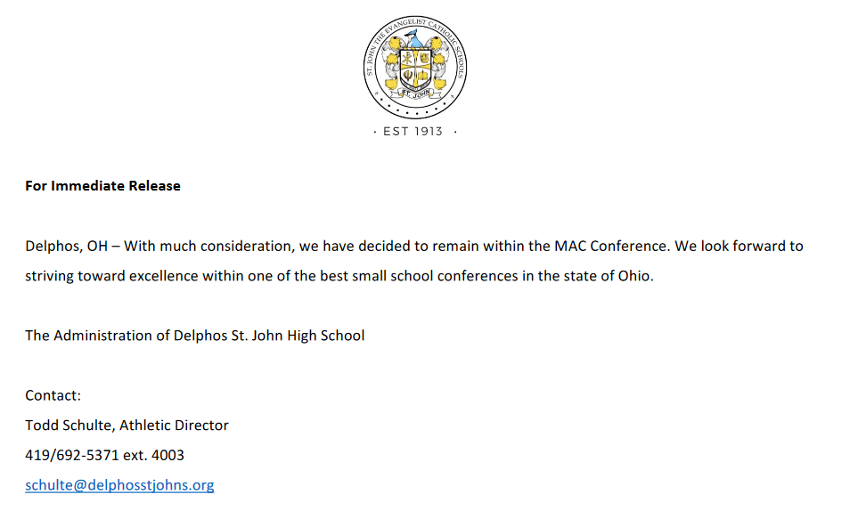 - Delphos St. John’s To Consider Move To Northwest Conference