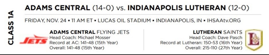 - 1A– Indianapolis Lutheran 35 Adam Central 28