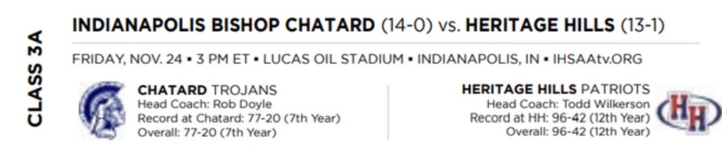 - 3A– Indianapolis Bishop Chatard 35 Heritage Hills 7