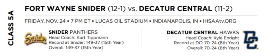 5A– Ft. Wayne Snider 33 Decatur Central 6