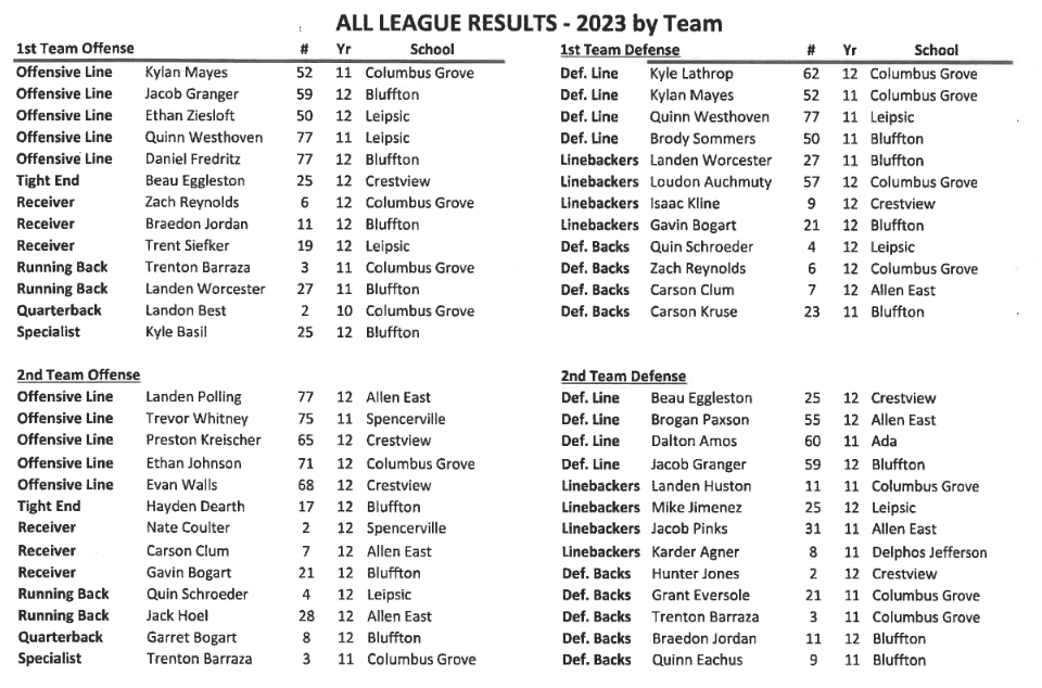 (10-23-23) The 2023 All-Northwest Conference (NWC) Football Team was announced today.