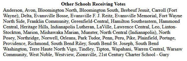 The Giants picked up 16 of the 22 first place votes in front of Kokomo, Lawrence North (4- 1st place votes) and Indianapolis Attucks.