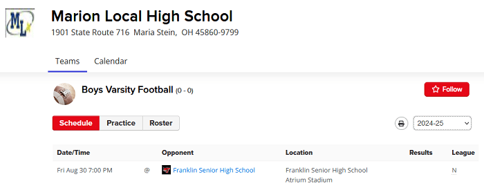 Marion Local will host Franklin in a non-conference week 2 game and then start Midwest Athletic Conference (MAC) action in week 3.