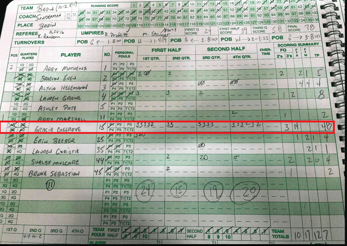 Her 48 points eclipsed the previous record held by Lizzy Sunderhaus who scored, 36 points at Springfield South on December 27th, 2007.