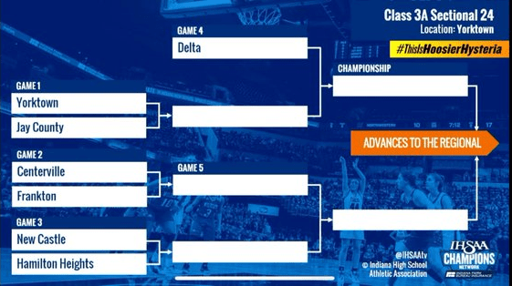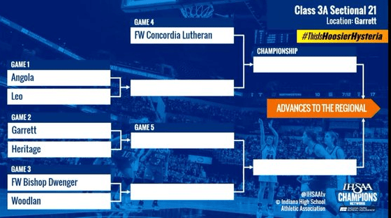 Sectional games are scheduled to begin Tuesday, Jan. 30, and run through Saturday, Feb. 3 with regionals on Saturday, Feb. 10. For the second year, the regional is a single-game championship, and the semi-state a two-game affair with the winner advancing to the state championship game. Two regional championship games will be played back-to-back at the same site with the winners finding out their next opponent and host site the following day. The semi-state games – scheduled for Saturday, Feb. 17 – will be randomly drawn and announced in a special pairings show via IHSAAtv.org.