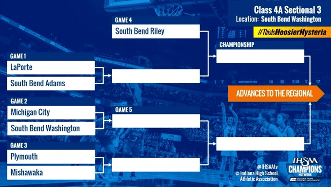 4A: South Bend Washington (host Michigan City in Class 4A, Sectional 3).