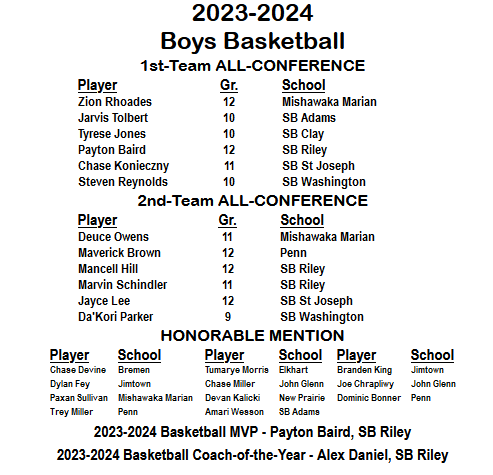 (3-4-24) The 2023-24 All-Northern Indiana Conference (NIC) boys basketball team was announced.