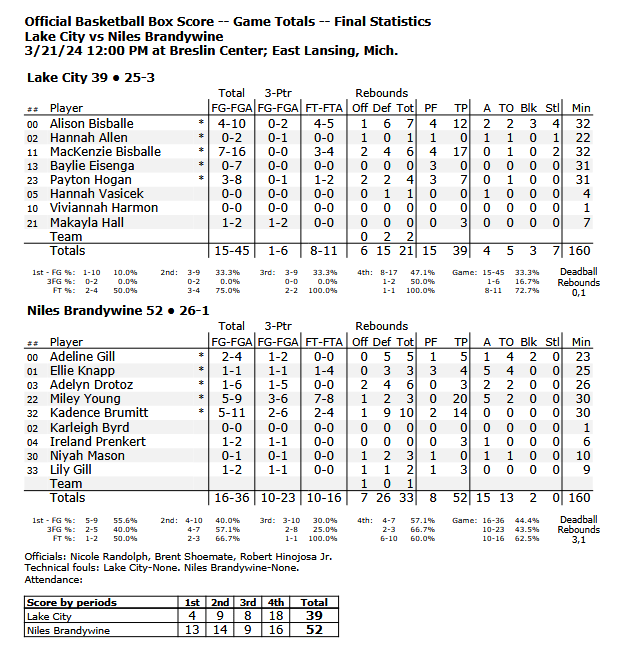 - Brandywine To Play Lake City in D3 Girls Basketball State Semifinal
