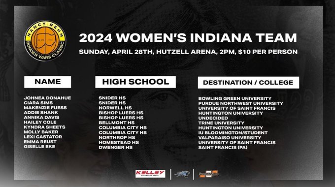 (4-23-24) The Nancy Rehm Border Wars Classic will be this Sunday, April 28th with the girls game starting at 2pm and the boys at around 4:15pm on the campus of St. Francis at the Hutzell Arena in Ft. Wayne.
