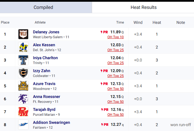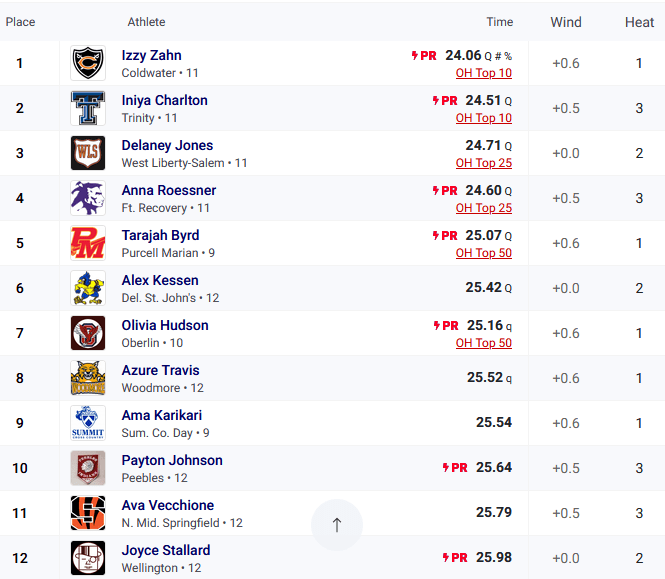 Ft. Recovery’s Anna Roessner had the 4th faster time in the prelims at 24.60 and will also run in the finals.