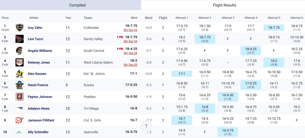 (5-30-24) Coldwater’s Izzy Zahn (Jr) put on a show today in the OHSAA D III State Track and Field Championships at Dayton’s Welcome Stadium.