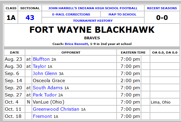 The Braves continue to beef up their schedule, since they remain an independent. Schedule includes two games with ACAC members Bluffton and South Adams, 2A Park Tudor and 3A John Glenn.