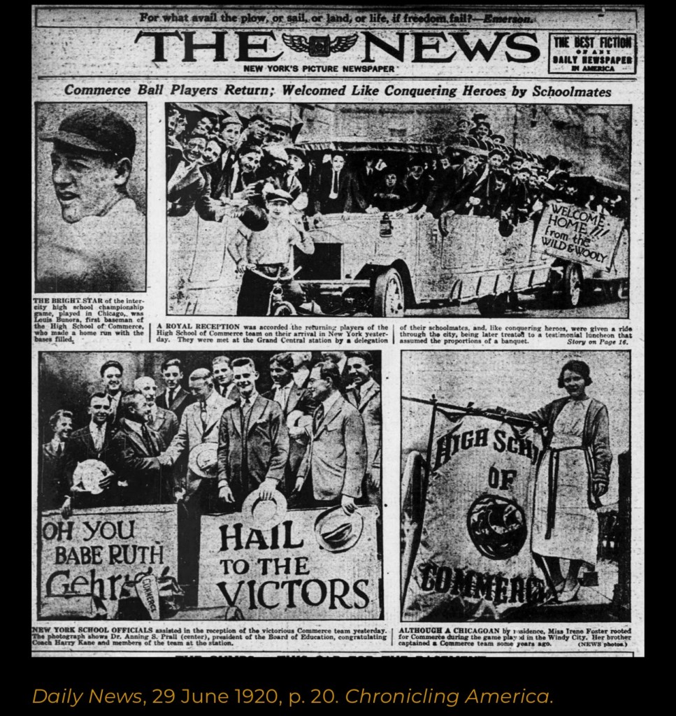 Lou Gehrig would die of Amyotrophic Lateral Schlerosis, often referred to as Lou Gehrig’s disease, on June 2, 1941, just before his 38thbirthday. In tribute to him two years later in November 1943, the students of the High School of Commerce launched a fund-raising drive. Within two months they had raised the equivalent of $30,000 today, with which to purchase an ambulance as a gift to the United States Army.