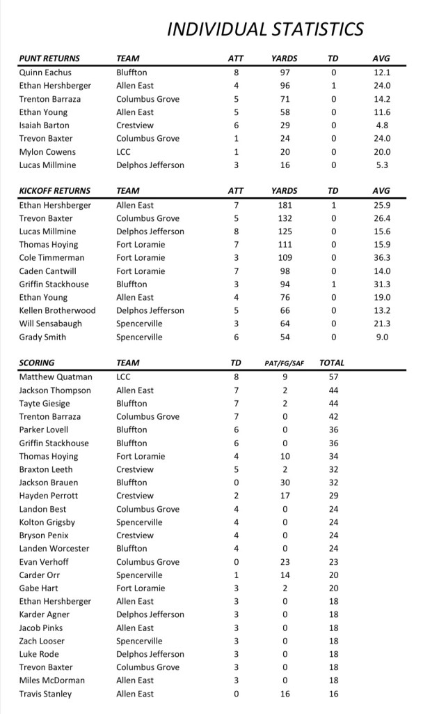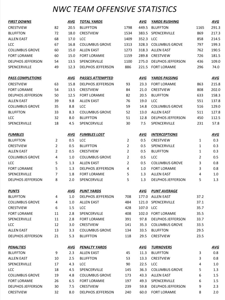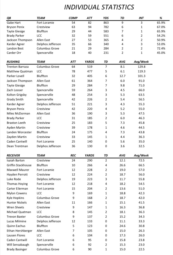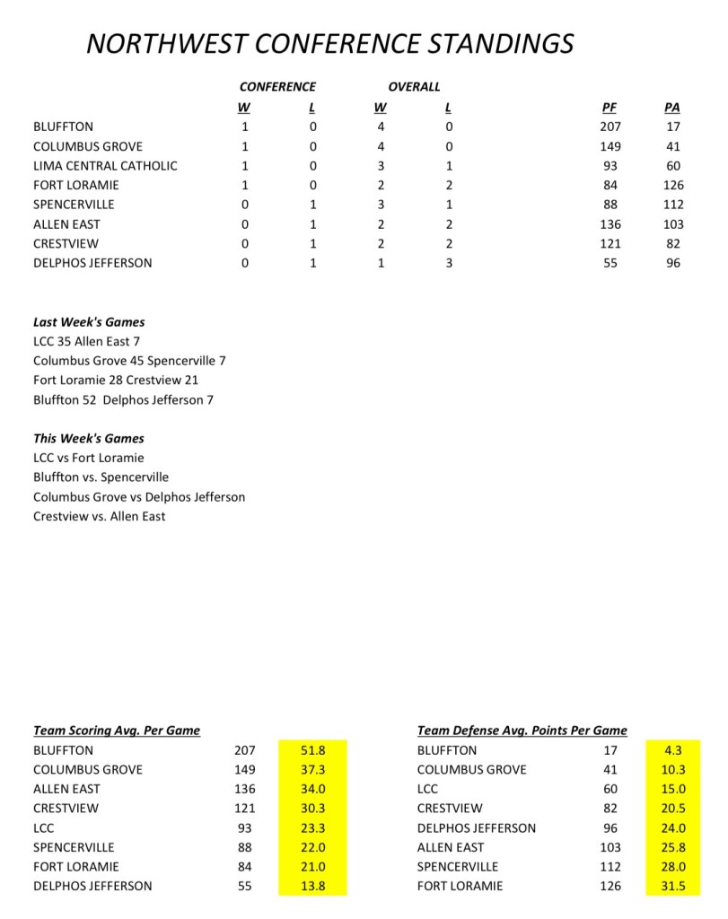 (9-16-24) Northwest Conference Week 4 Stats and League Games only after 1st week of League games