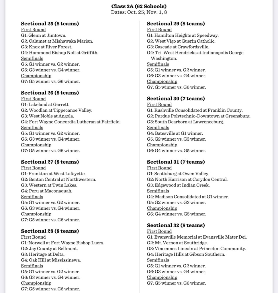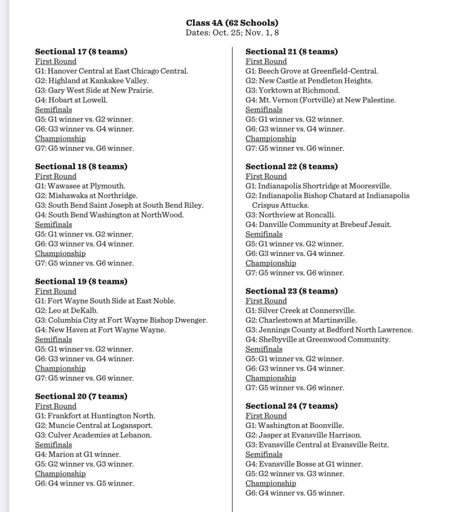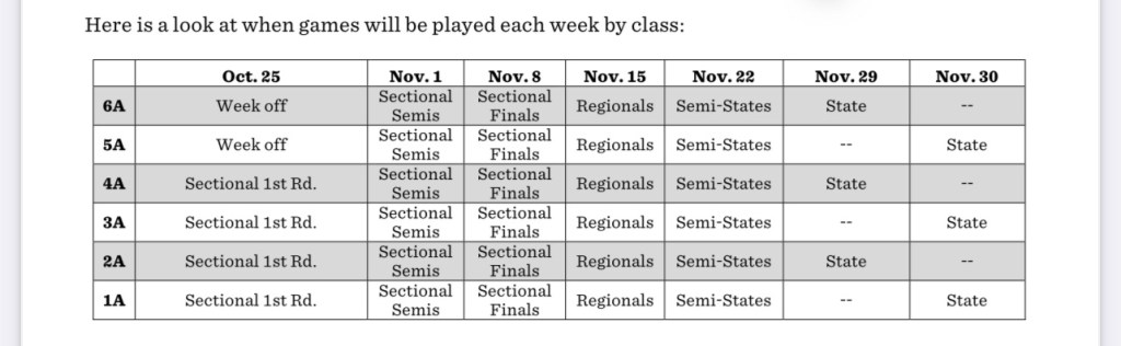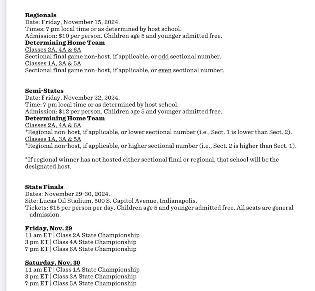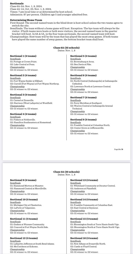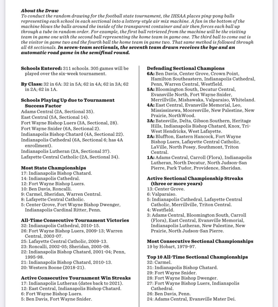 (11-13-24) Complete details of today’s drawing for all of the brackets for all 6 classes and 312 schools of the 2024 IHSAA State Football Tournament.