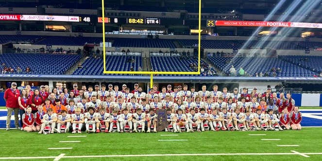Class 4A: New Palestine 56 East Noble 26 – Dragons win their second 4A crown (2014) to bookend a pair of 5A titles in 2018 and 2019