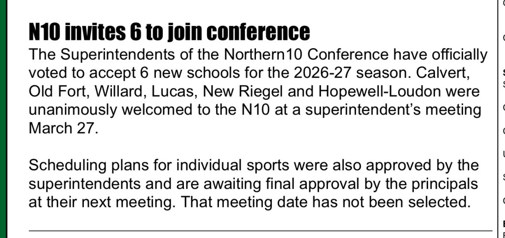 (11-8-24) The Northern 10 Athletic Conference (or Northern 10 / N10) is currently made up of eight schools from northern Ohio and began athletic competition in 2014.