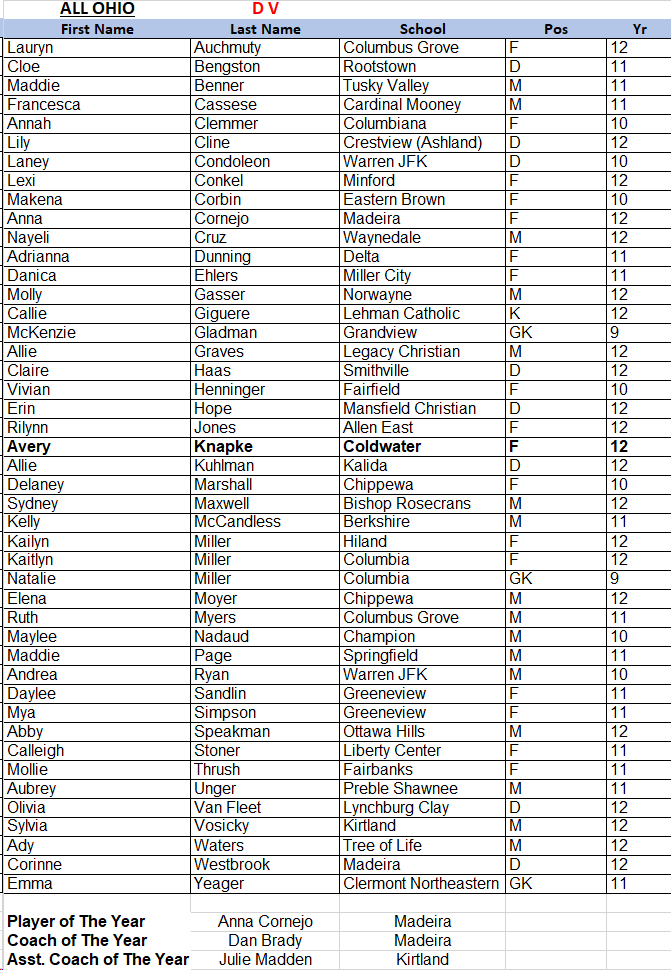 COMPLETE LIST – 2024 OSSCA All Ohio Awards