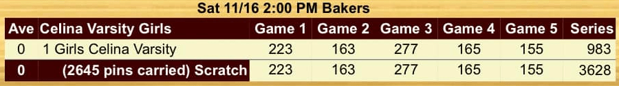 Celina’s third baker game they rolled 9 strikes in a row and set a new school record for the high baker game with a 277.