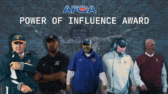 (11-26-24) Five of the best high school coaches in the nation highlight today’s announcement of the 2024 AFCA Regional Power of Influence Award winners. This award is given jointly by the American Football Coaches Association® and the American Football Coaches Foundation®. These winners will be honored during the 2025 AFCA Convention, which will be held on January 12-14, 2025, in Charlotte, North Carolina.