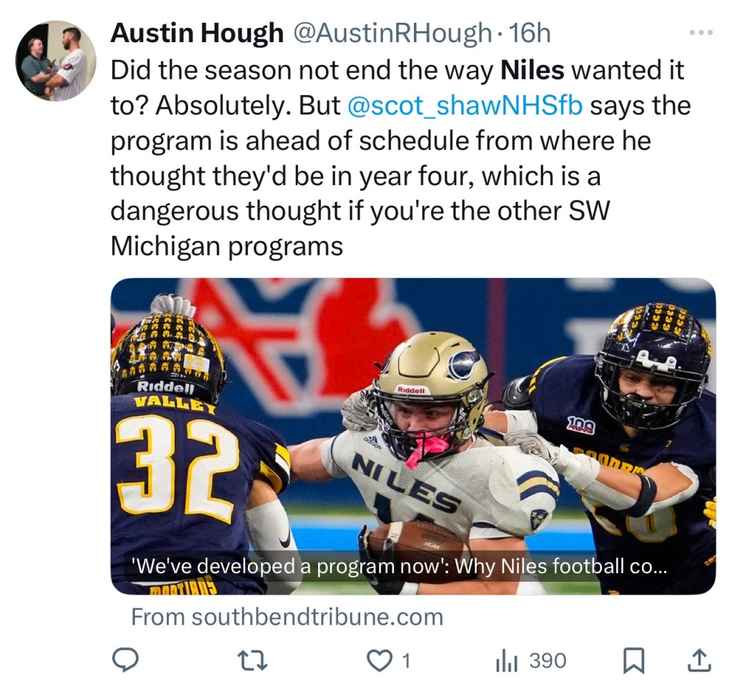 It was the Vikings first trip to a state football final in school history. Niles finished the season with a 12-2 record.