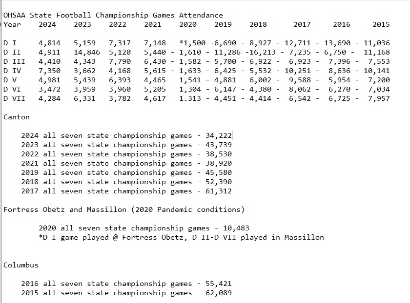 (12-6-24) A look at attendance figures for all of the 2024 OHSAA State Football Championship games in Canton.