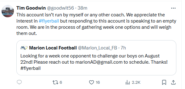 The excitement it started was quickly ended when Flyer’s Coach Tim Goodwin answered-