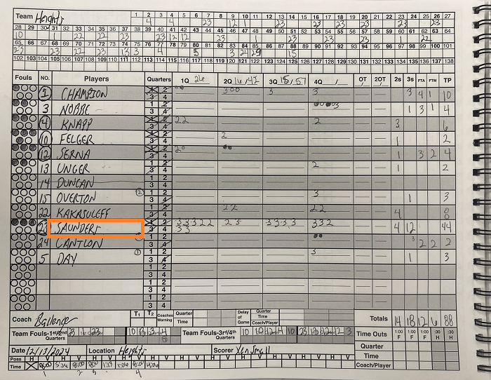 Saunders connected on 16-of-29 shots – including a school-record 12-of-20 from 3-point range – en route to 44 points, six rebounds and three steals in leading Hamilton Heights to an 88-50 triumph over Logansport. The 6-4 guard provided 13 points, six rebounds and five steals as the Huskies moved to 4-2 for the season by topping Muncie Central 48-41. In the two games, Saunders was 20-of-43 from the field, 13-of-24 from deep and 4-of-6 on freebies.