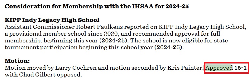 However the Indiana High School Athletic Association (IHSAA) had at least one year. The individual who votes against an item has his named listed: