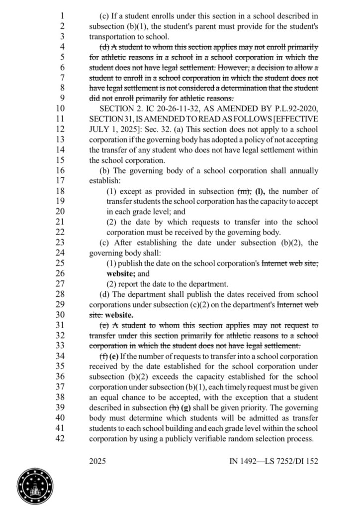 (1-14-25) The Indiana House will be discussing a bill that would drastically change the transfer rules in the Indiana High School Athletic Association (IHSAA).