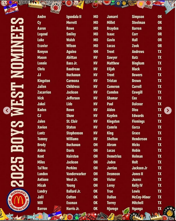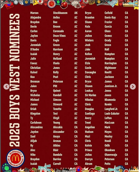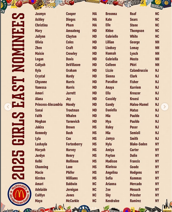 A complete list of 2025 McDonald’s All American Games East and West Nominees are on our @McDAAG Instagram.