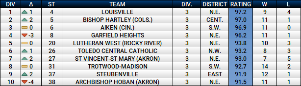 I love getting angry messages from Garfield Heights fans. Knowing that they are coming, there is no reason that the Bulldogs should have lost to Wayne this past Saturday. Louisville has been on fire since their disastrous showing at the Torrey Pines Tournament over the winter break. The Leopards take the top spot in Division III after an overtime win over Kettering Alter, the defending D-II state champion. Shawnee dropped out of the top 10 after Steubenville came away with a pair of double-digit wins over two teams with double-digit wins, East Liverpool and Malvern.