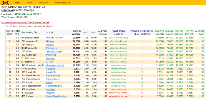 Final 2024 Region 25 D VII Rankings (courtesy www.joeeitel.com)