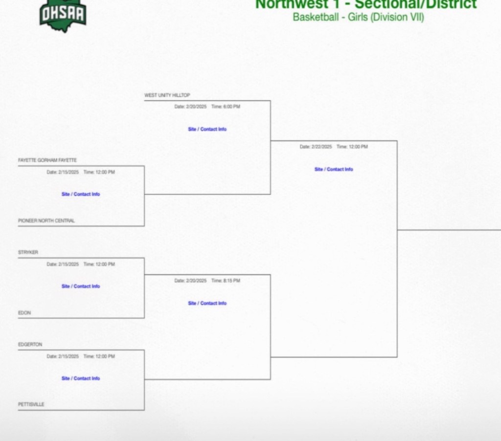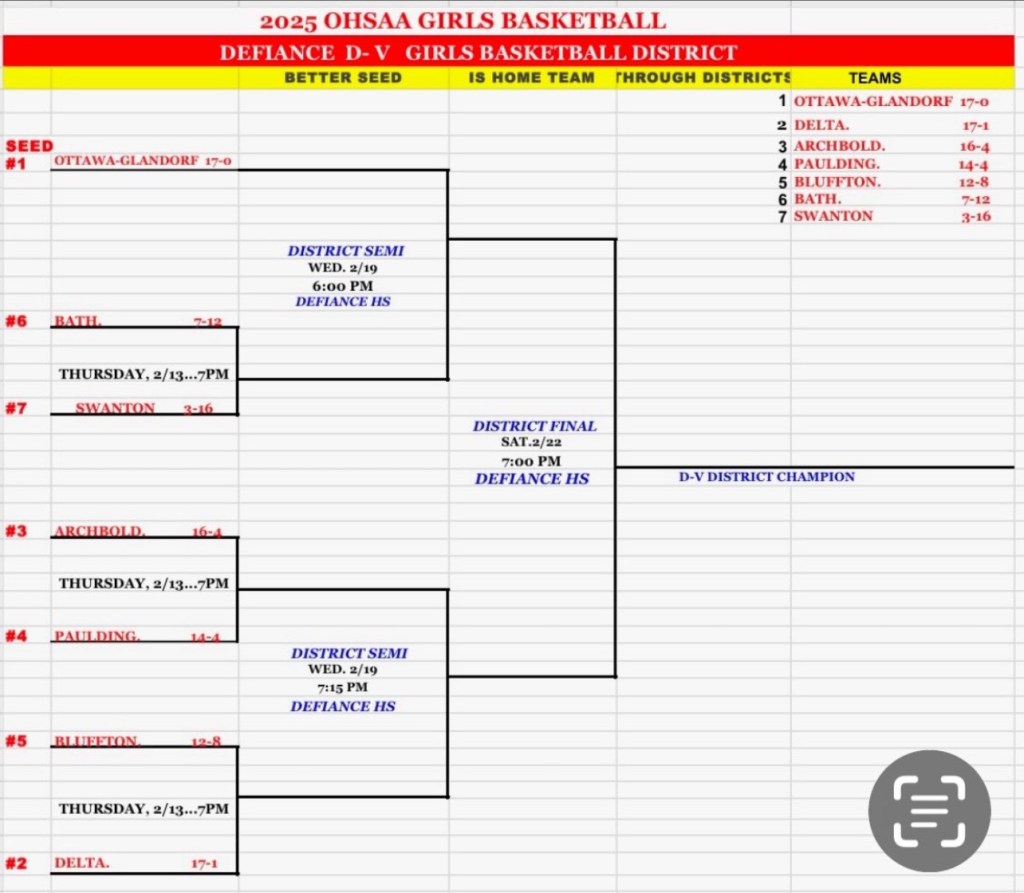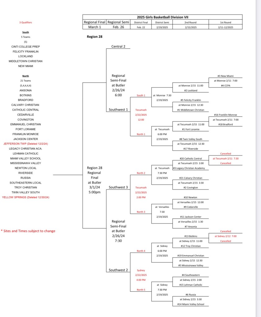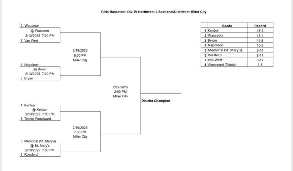 2-2-25 – The 2025 OHSAA Girls State Basketball Tournament Draw.