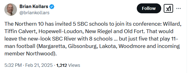 (2-11-25) Tonight at the Sandusky Schools Board of Education meeting an action item will be considered that would have Sandusky leaving the Sandusky Bay Conference (SBC) and join nine other SBC members to form a new athletic conference.